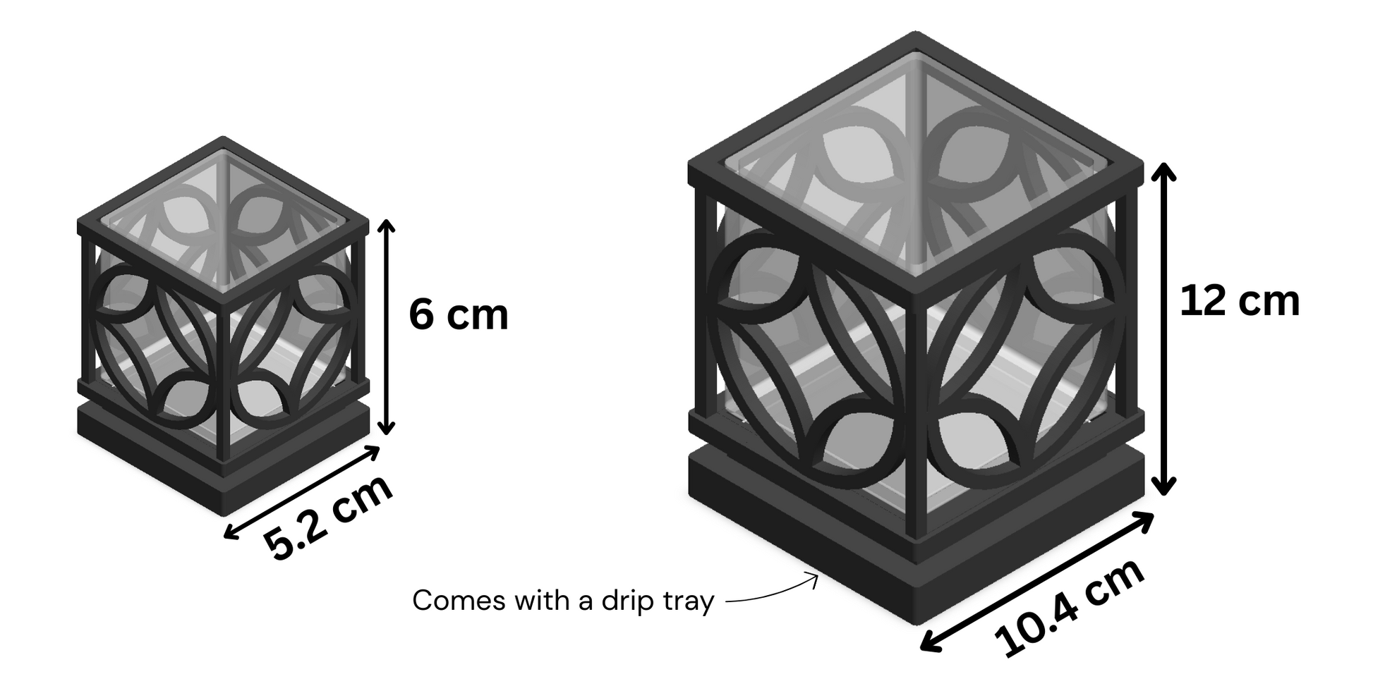 Small: 5.2 cm (L) x 5.2 cm (W) x 5.3 cm (H)